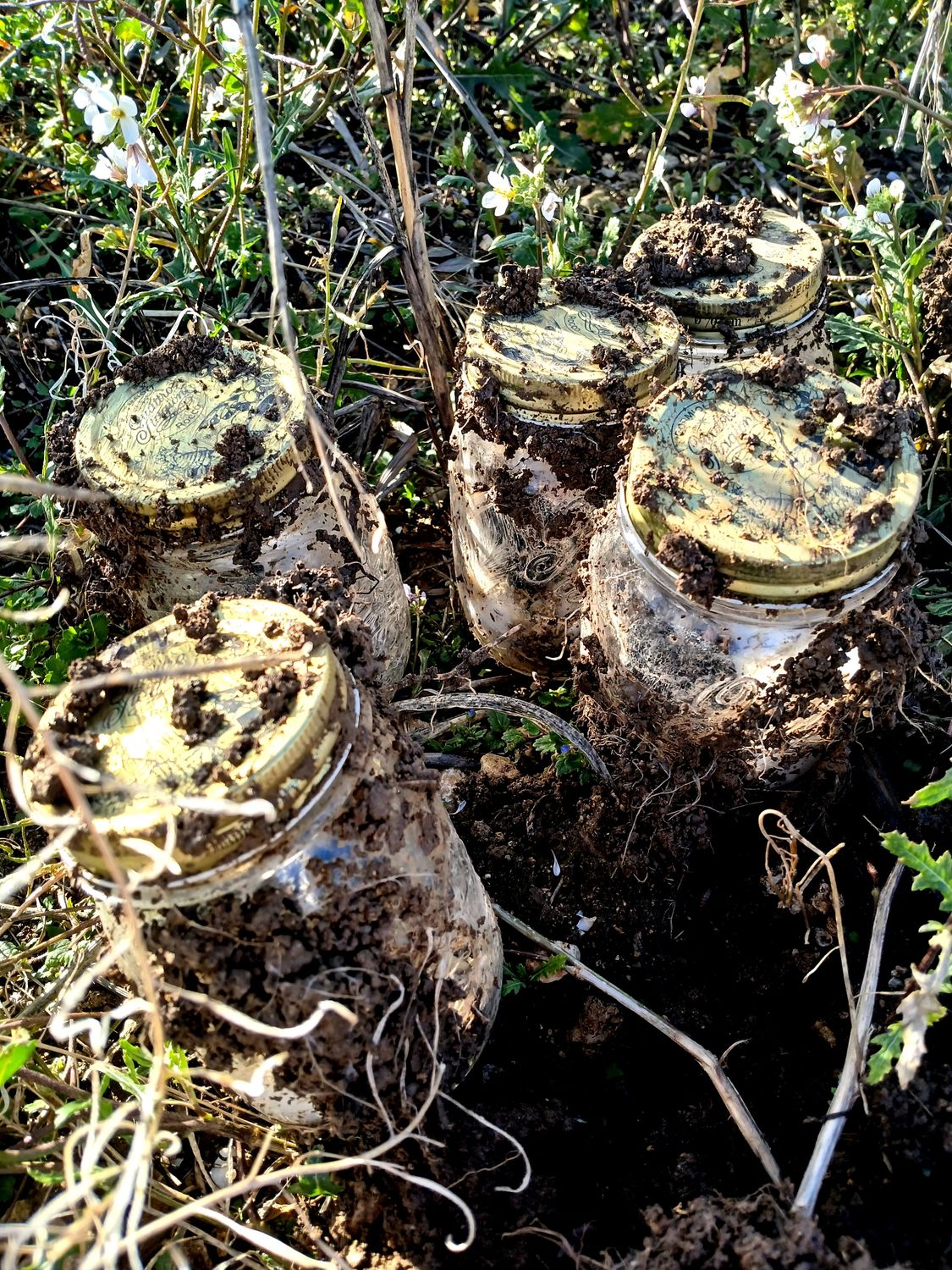En el hueco de la tierra puse una ofrenda de pan y manzanas, para agradecer a los espíritus y a la Madre Tierra. Tapé la ofrenda con más tierra y me traje los frascos a casa. Les retiré los restos de tierra, los decoré y etiqueté.