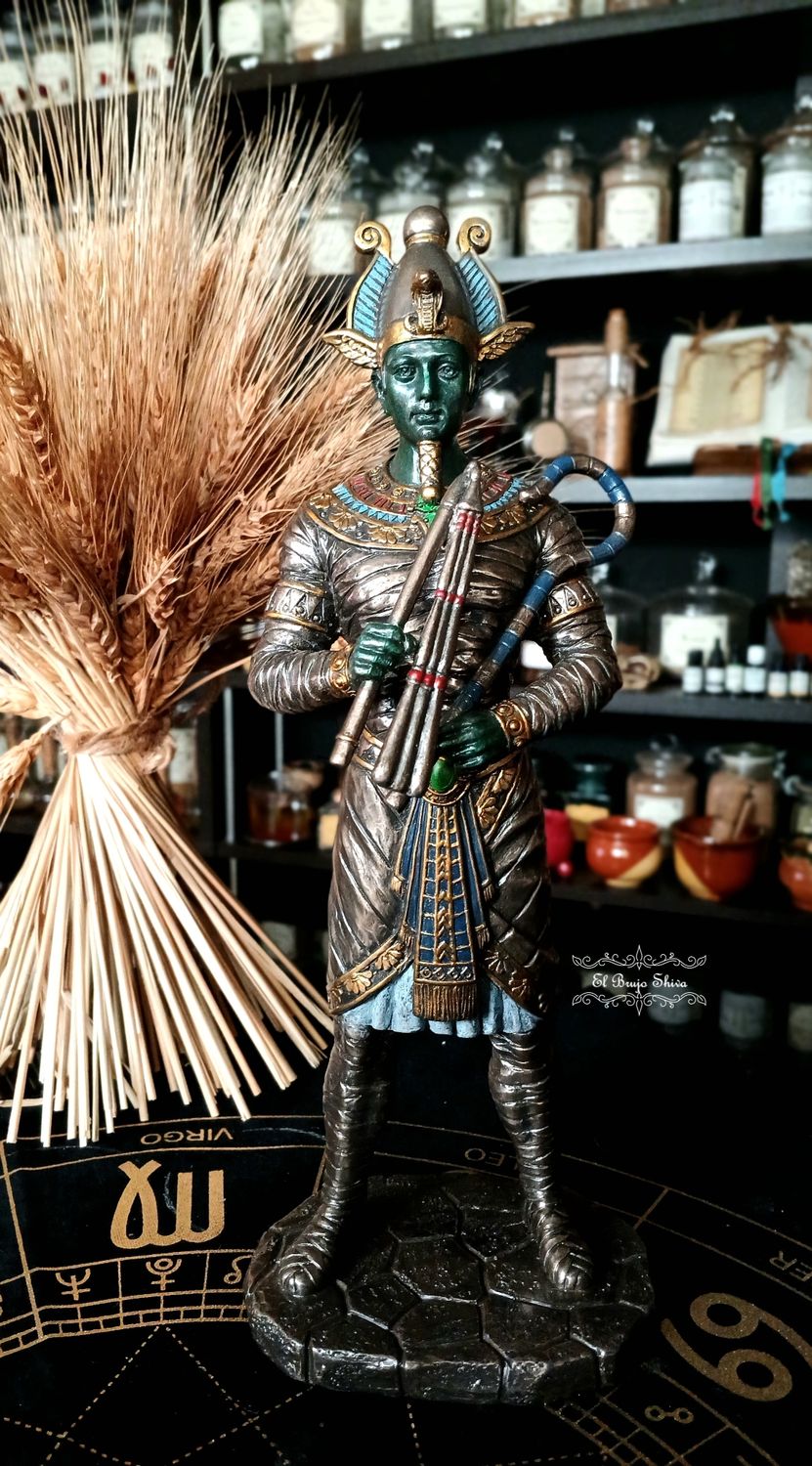 El Dios Osiris es el dios egipcio de la vegetación, de la resurrección y señor del más allá. Isis lo resucitó con su magia y la ayuda de Anubis. Él representa la vida inmortal, el ciclo vegetal que se renueva a sí mismo. En el mundo antiguo la energía vital que se produce en la Natura y que permite la renovación de la vida cada año, fue divinizada. En el caso de los egipcios esta energía se representó en la figura del Dios Osiris.